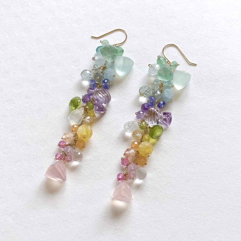 キャンディーのような色合いで様々な大きさや形の天然石をふんだんに使ったシリーズや、シンプルで付けやすいシリーズをご紹介いたします。