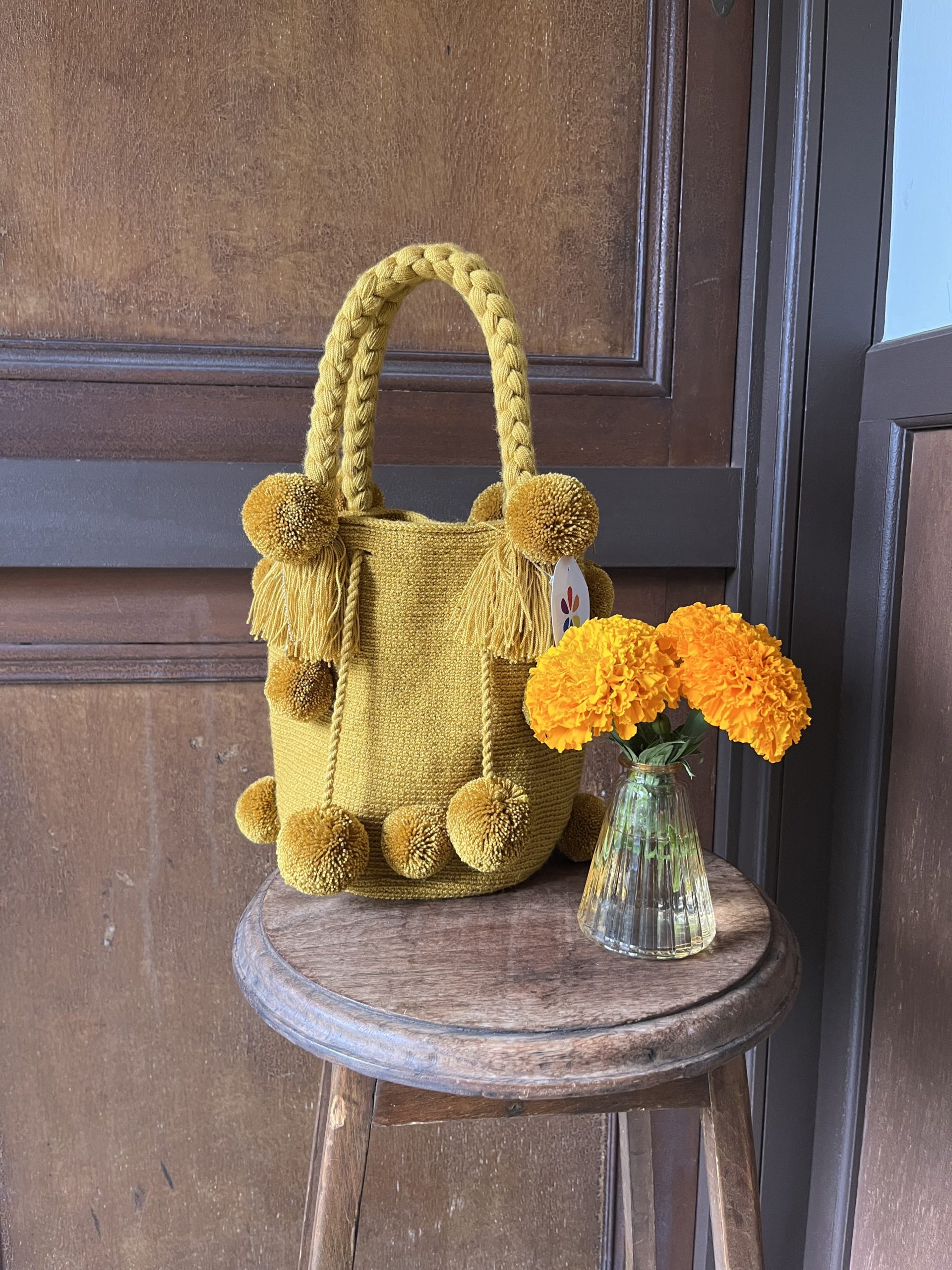 全て手編みで制作したバックはカラフルなものから日本人向けにモダンにアレンジしたものをデザイン制作しております。