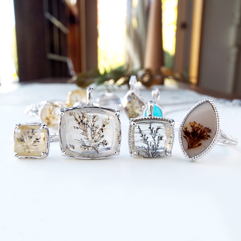 まるで本物の植物なのだと思えてしまう天然石「デンドリティッククォーツ/アゲート」繊細な樹状模様を内包するこの天然石を、シルバーやゴールドでジュエリーに仕立てました。