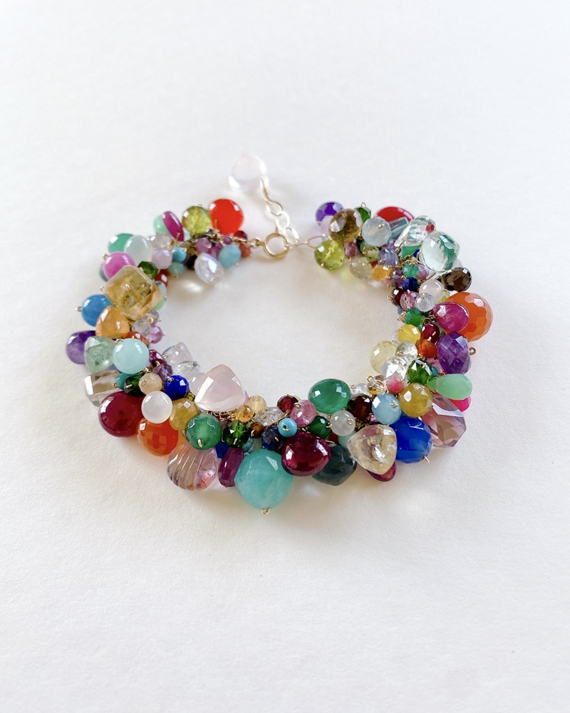 キャンディーのような色合いで様々な大きさや形の天然石をふんだんに使ったシリーズや、シンプルで付けやすいシリーズをご紹介いたします。
